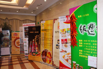 众多调味品企业也纷纷为商会组织的这次展示洽谈活动,各显神通。在活动的酒店现场,到处都是企业易拉宝、宣传单页的摆设,各式各样,精彩风尘。虽然企业的宣传各式各样,但是,由于该活动是在商会的规范组织下开展的,宣传的摆设自然是规矩整齐,充分显现商会主办的活动的正规性。在酒店大厅能看到主办方搭设的接待处。明显的标示给参加活动的商家都省了少精力。